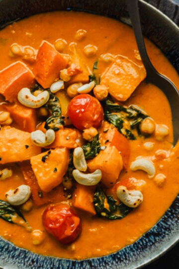 Kürbis-Kichererbsen Curry mit Thaiauberginen