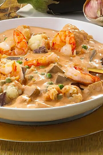 Grünes Blumenkohlcurry mit Garnelen