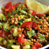 - Bohnen, Karotten und Brokoli in Salzwasser 4-5 Minuten blanchieren und in Eiswasser abschrecken.