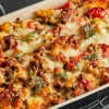 - Speck und Rindfleisch wieder zum Gemüse geben, salzen, pfeffern und mit dem Mehl bestäuben. Gut durchmischen und ca. 5 Minuten schmoren lassen.