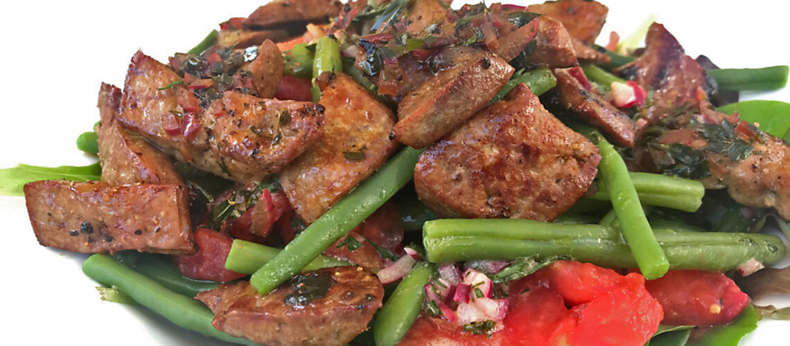 Bohnen-Tomatensalat mit Kalbsleber