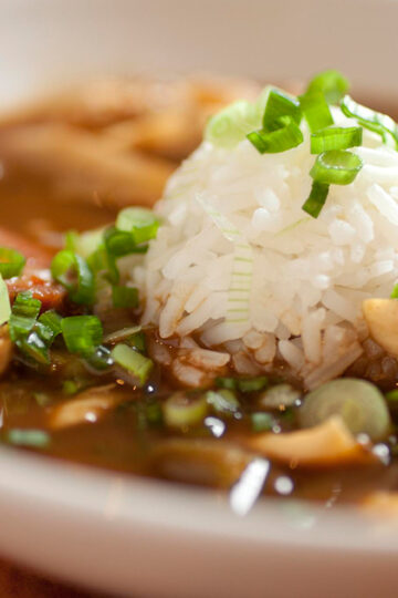 Gumbo ist ein klassisches Eintopfgericht aus der amerikanischen Südstaatenküche. Typisch für diesen Eintopf ist das Binden mit einer „Roux“ – einer dunklen Mehlschwitze.