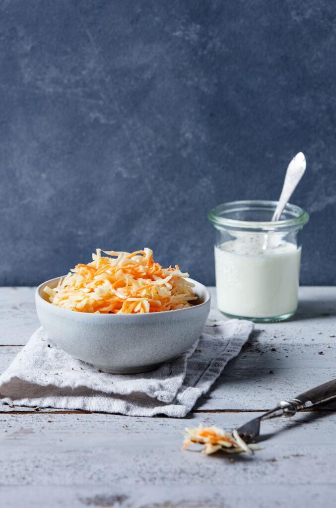 - Lass den Coleslaw bis zum Servieren am besten ein paar Stunden im Kühlschrank durchziehen.