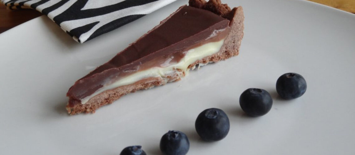 - Die zweite Tarteschicht mit Milchschokolade analog zubereiten (auch mit 150 ml Halbrahm). Geschmolzene Schokolade auf der festen, weissen Schicht verteilen und wieder mindestens 1 Stunde im Kühlschrank fest werden lassen.