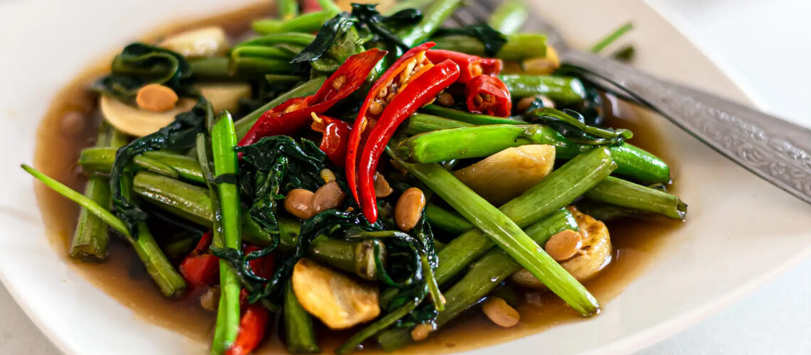 - Vegetarier bestellen dieses köstliche Gemüse garantiert bei jedem Thailand-Besuch: den dunkelgrünen, exotischen Wasserspinat. Doch passt „Morning Glory“ auch als Beilage perfekt zu Fleisch- und Fischgerichten... in der Pfanne gebraten, oder auch als Spinatsalat.
