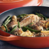 • Schalotte fein würfeln, mit Essig, 50ml Spargelkochsud, etwas Salz, Pfeffer und Öl verrühren.