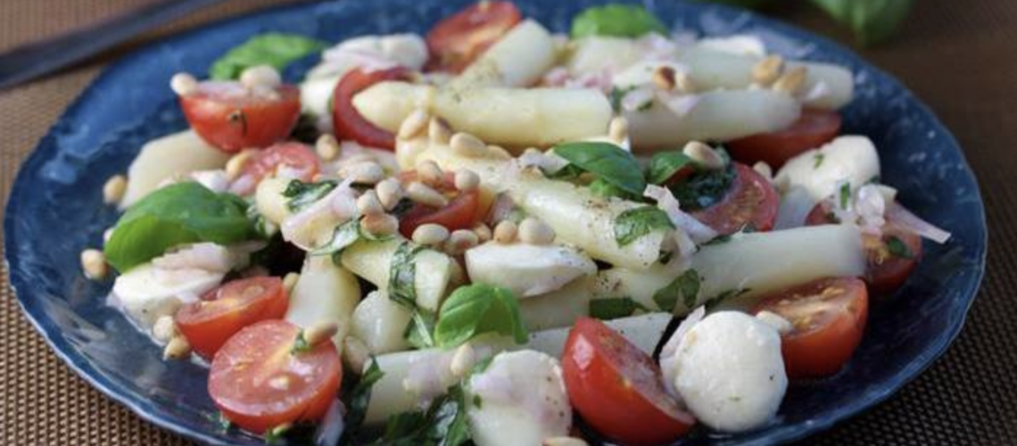 Ein toller Spargelsalat mit einer Basilikumvinaigrette. Das Wunderbare daran ist, dass dieser Spargelsalat mit Basilikum-Vinaigrette low carb ist und man ihn nach Lust und Laune genießen kann. Und es ist auch ein lecker, leichtes Rezept für heiße Tage oder wenn es einmal schnell gehen muss. Natürlich kann man das Rezept auch mit einer Mischung aus grünem und weißen machen.