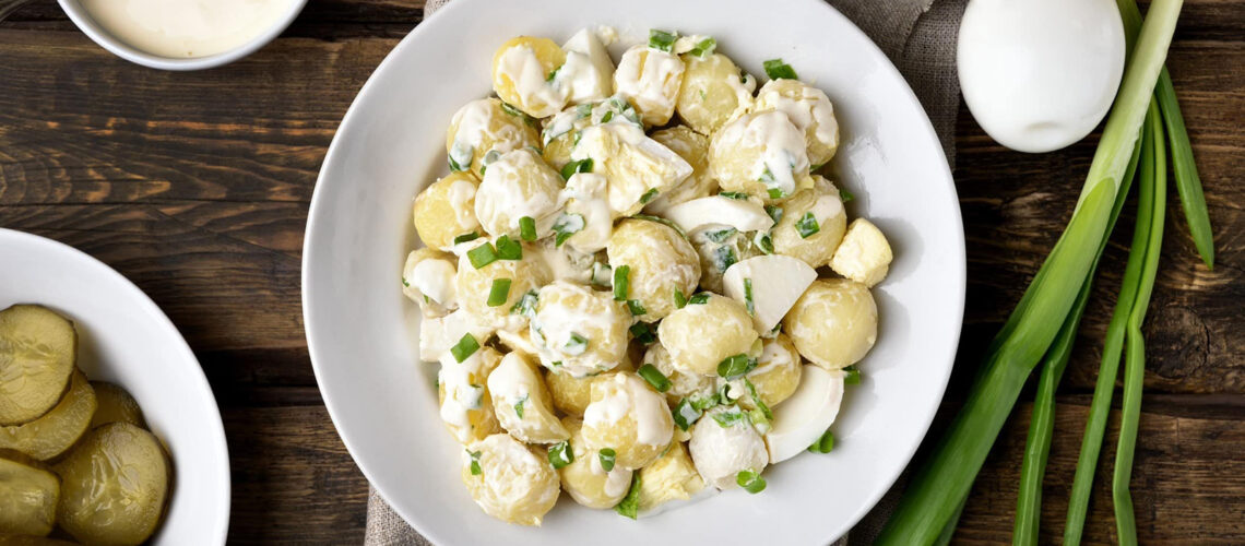 Das ist ein Rezept für nen richtigen Kartoffelsalat. Also nicht eins für diese totgekochten Kartoffel die in Brühe schwimmen und sich schwäbischer oder bayrischer Kartoffelsalat schimpfen. Der Rheinische Kartoffelsalat zählt zu den beliebtesten Klassikern seiner Art und kommt so richtig schön deftig daher.