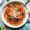 - Die Sauce in die Schüssel mit den vorbereiteten Würfeln geben und vorsichtig unterheben. Mindestens 2 h, besser über Nacht im Kühlschrank ziehen lassen.