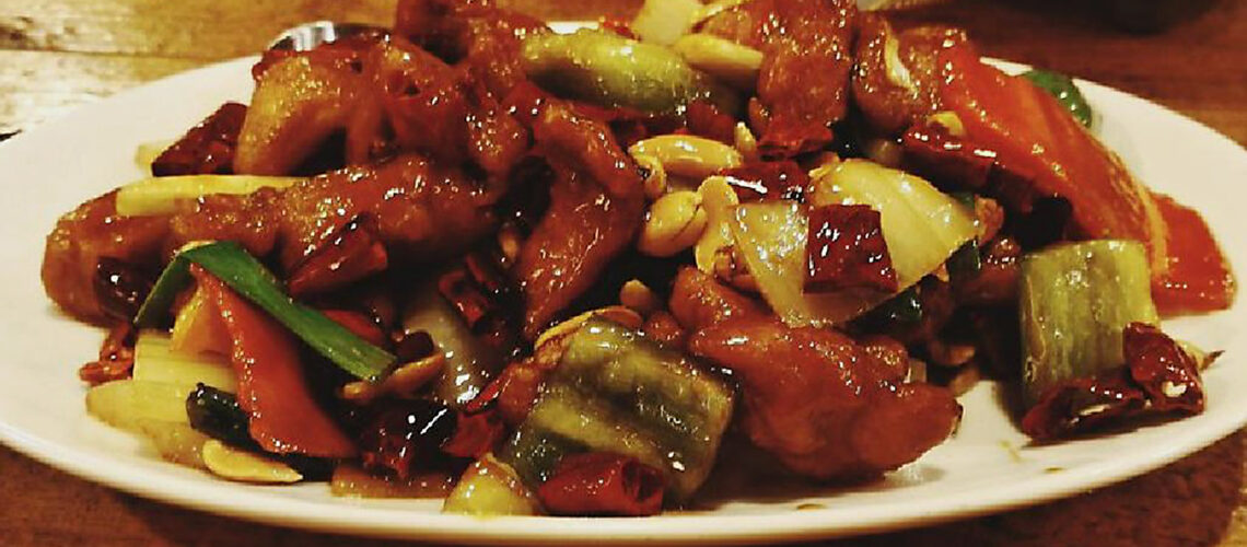 Das Rezept für Kung-Pao- oder Gong-Bao ist benannt nach einem kaiserlichen Gouverneur der chinesischen Provinz Szechuan, der während der Qing-Dynastie im späten 19. Jahrhundert regierte. Interessanterweise wurde die Verwendung des Namens – nicht des Gerichts! – während der Kulturrevolution verboten, weil er mit dem Kaiserhof assoziiert wurde und damit als politisch inkorrekt galt. Eigentlich ein Rezept aus Szechuan, gibt es Kung-Pao heute überall in China. Es wird mit Chilis und Szechuan-Pfeffer mit seinem bekannten zitrus-artige Kribbeln gewürzt und in einer aromatischen süß-sauren Sauce serviert. Frühlingszwiebeln geben Frische und geröstete Erdnüsse das knackige Etwas.