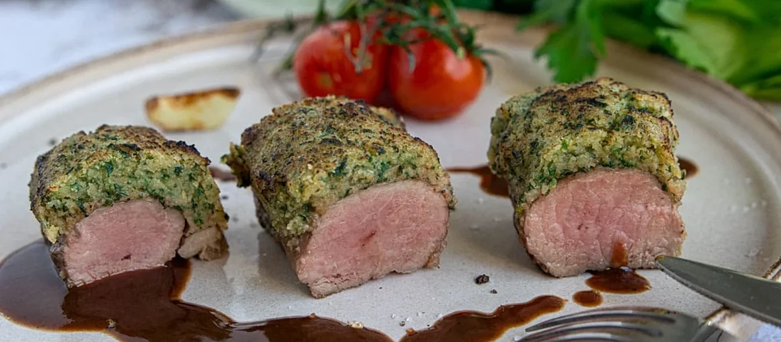 Bei Lammlachsen mit Kruste kann man sich geschmacklich kreativ austoben. Ob nur mit Kräutern, oder einer Senfkruste oder oder.