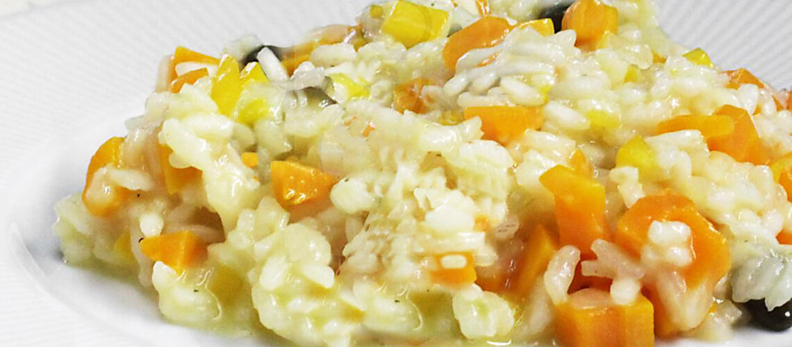 - Wenn Karotten und Reis gar sind die Butter und den Parmesan unterziehen. Die Karotten dürfen noch Biss haben. Mit Salz und Pfeffer abschmecken.
