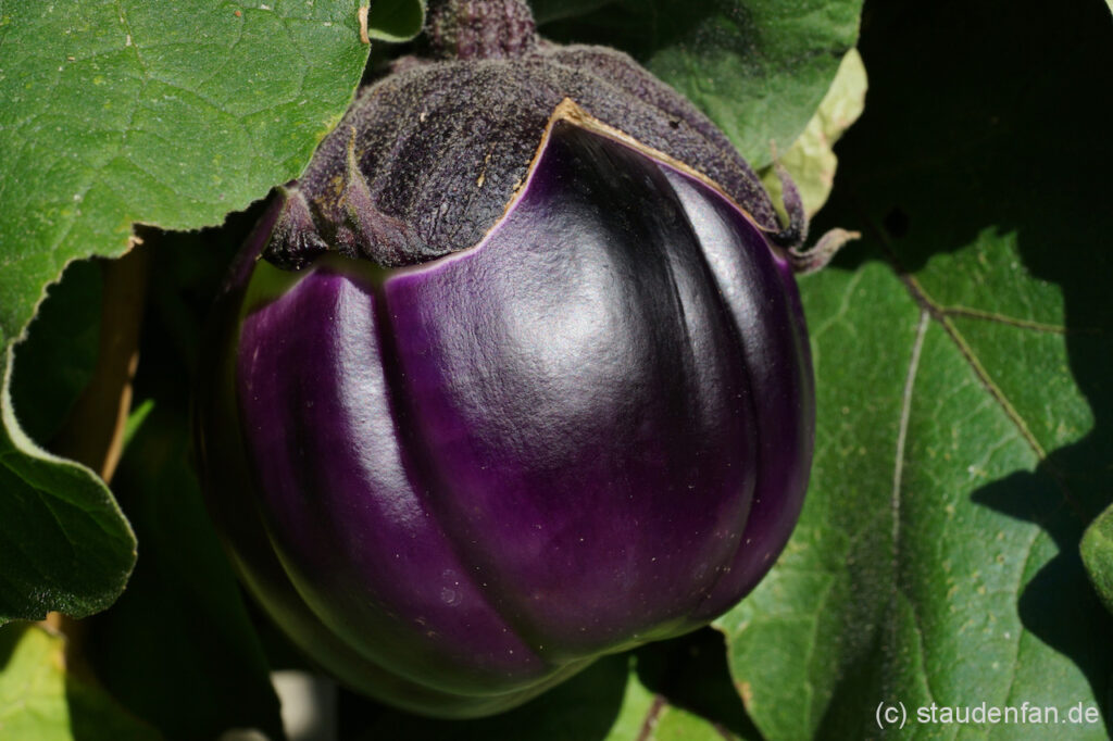 Möglichst nehmen wir eine Aubergine ‘Prosperosa’. Diese äußerst schmackhafte Aubergine ‚Prosperosa’ stammt aus Italien und ist besonders auf Sizilien sehr beliebt. Anders als die länglichen tief violetten Auberginen, die man meist bei uns findet, sind dort runde und buntere Sorten verbreitet. Die Aubergine ‚Prosperosa’ bringt wahnsinnig große und sehr schmackhafte Früchte hervor.