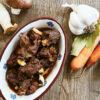 - Jeweils 8 Tomaten- und Schalottenhälften dazugeben. Den Bräter zunächst für 20 Minuten bei größer Hitze und dann für 40 - 45 Minuten bei 120 - 150° C in den Backofen geben. Fleisch mehrmals mit Rotwein übergießen.