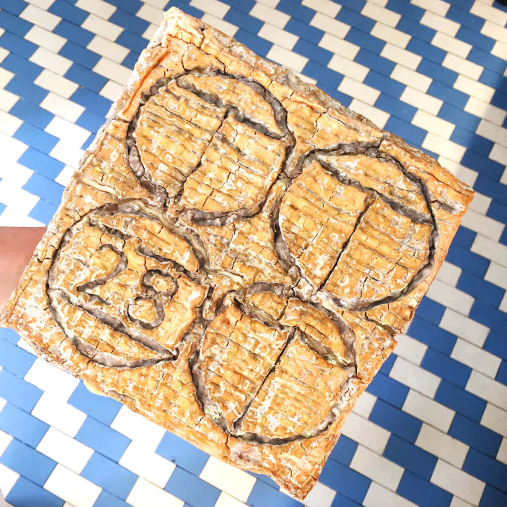 Damit die sich der Geschmack richtig entfalten kann, ist jedoch nicht nur eine gute Qualität der Zutaten von großer Bedeutung, sondern auch die richtige Konsistenz. Die Birne muss die richtige Reife haben, nicht zu fest, aber auch nicht matschig. Doch der handwerklich hergestellte Taleggio, hat mit diesen Supermarkt-Sorten abseits des Namens nichts gemein. Er ist ein Kunstwerk. Das sieht man schon an seinem Äußeren, an der zerfurchten und zerklüfteten Rinde, die man unbedingt mitessen sollte.