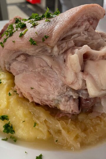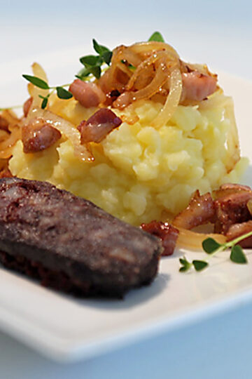 Der Apfel hängt im Himmel, die Kartoffel steckt in der Erde: macht zusammen Himmel un Ääd, das rheinische Nationalgericht.