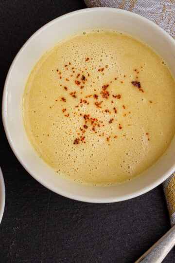 Für eine gute einfache Senfsauce benötigt es gar nicht viel. Ähnlich wie bei einer Béchamel-Sauce reicht ein Klecks Butter, etwas Mehl und Gemüsebrühe für die Mehlschwitze, um die Sauce anzudicken. Im zweiten Schritt kommt dann euer Lieblingssenf (vorzugsweise mittelscharfer, Kräuter- oder Dijonsenf), Sahne und etwas Salz dazu.