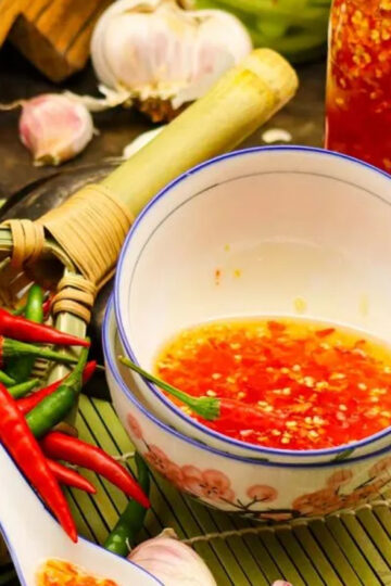 Süße Chilisauce, in Thailand als Nam Chim Kai bekannt, ist ein beliebtes Chilisaucen-Gewürz in der thailändischen, afghanischen, malaysischen und westlichen Küche. Ideal zu Frühlingsrollen.