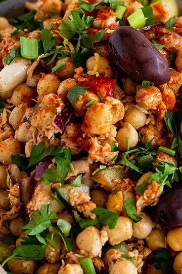 Ein erfrischender Salat mit Kichererbsen, Thunfisch und Koriander.