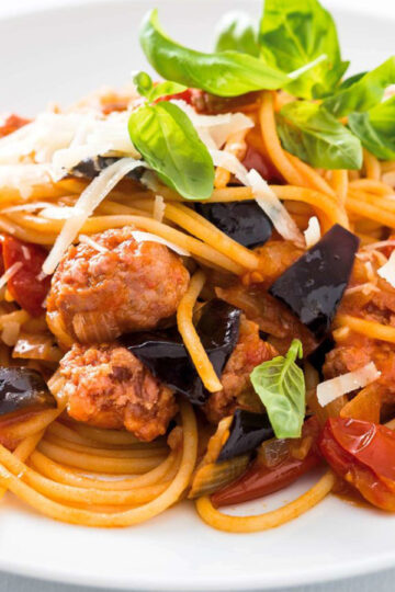 Pasta Salsiccia Meatball mit Aubergine