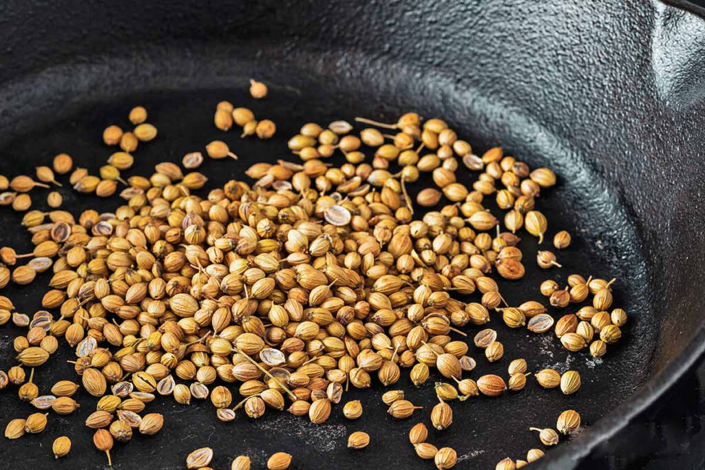 Koriandersamen und Kreuzkümmelsamen sorgen für die richtige Würzung der Currypasten. Da Kreuzkümmel und Koriander unterschiedliche Röstzeiten haben, werden sie nacheinander in einer kleinen Pfanne bei kleiner Hitze trocken – d.h. ohne Öl – geröstet, bis die Gewürze zu duften beginnen. Dabei immer wieder mit einem Holzspatel rühren, bis sie sich zu einem dunklen braun verfärben, dabei aber nicht verbrennen. Dann abkühlen lassen. Mit dem ESGE Zauberstab Processor verarbeite ich sie zu Pulver. Weißer Pfeffer bringt Pepp in das grüne Curry, die rote Paste würze ich mit schwarzem Pfeffer. Der Pfeffer wird gemeinsam mit den Samen angeröstet und zerkeinert.