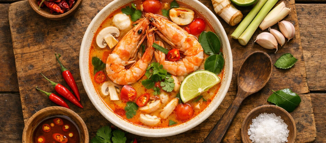 Kein Zweifel: Tom Yam Goong (oft auch Tom Yam Gung geschrieben) zählt zu den bekanntesten, beliebtesten und leckersten Thai-Gerichten! Tom Yam hat es weit über die Grenzen Thailands geschafft. Tom Yam ist einfach einzigartig im Geschmack. Die Mischung der Aromen, besonders der dominierende frische und leicht saure Geschmack, machen Tom Yam zu einem Thai-Gericht, das du sicherlich mehr als nur einmal essen wirst.